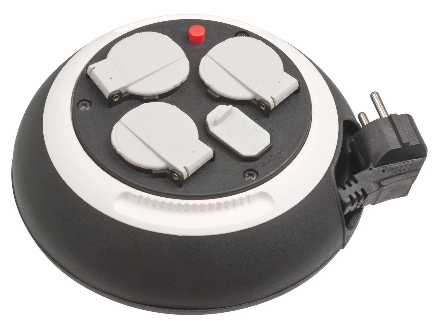 Een kabelhaspel is altijd handig om in huis te hebben en om mee te nemen naar de camping. Deze Comfort-Line kabelhaspel is voorzien van 3 meter verlengsnoer zodat je altijd bij het stopcontact kan. De kabelhaspel heeft 3 geaarde stopcontacten met een zelfsluitende klapdeksel en 2 USB-laadcontactdozen die stof- en vuilafstotend zijn. De USB-laadaansluitingen hebben een laadstroom van maximaal 2100 mA, voor snel laadproces.