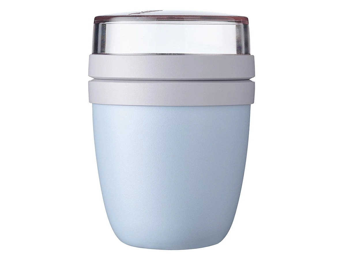 Neem je graag kwark of yoghurt mee naar je werk? Wanneer je thuis al de muesli erbij in doet is eenmaal op het werk de knapperigheid er al van af. Speciaal om verschillende ingrediënten gescheiden mee te kunnen nemen heeft deze lunchpot twee verschillende compartimenten. Door middel van een eenvoudige draaibeweging scheid je de twee compartimenten om de ingrediënten te mixen.