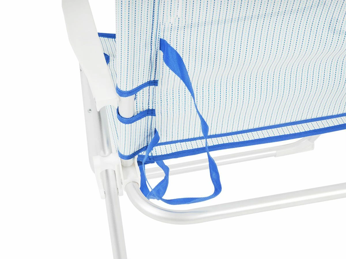 Wil je comfortabel kunnen zitten zonder veel geld kwijt te zijn? Dan is deze aluminium klapstoel een goede keuze! De klapstoel heeft een lichtgewicht aluminium frame in de vorm van een U, dit zorgt ervoor dat de poten minder snel wegzakken in een zachte ondergrond. De zitting is gemaakt van textileen en is daarmee vochtbestendig. Het is dus geen probleem om hier met je natte zwemkleding in te gaan zitten.