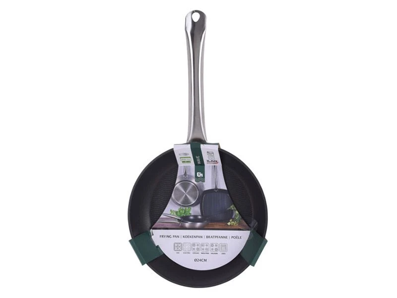 Een koekenpan met een diameter van 24 cm is een ideaal formaat om bijvoorbeeld een lekker eitje te bakken of het bakken van aardappels en vlees. De pan heeft een bodemdikte van ongeveer 3 mm en is voorzien van een anti aanbak coating zodat je gerechten niet aankoeken.