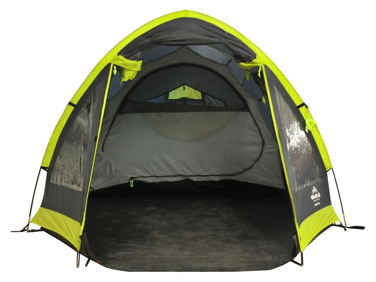 De slaapcabine heeft een afmeting van 180 x 205 centimeter, dat is ruim genoeg om met zijn drieën op een slaapmat te kunnen liggen. Wil je liever op een luchtbed liggen? Daarvan passen er maximaal twee in.