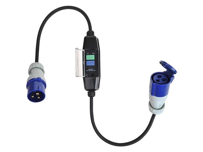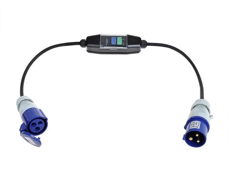 Deze CEE aardlekschakelaar is voorzien van een CEE stekker en een CEE contrastekker.